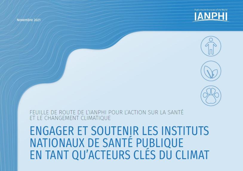 L'Association internationale des instituts nationaux de santé publique (IANPHI) a lancé le 10 novembre 2021 la feuille de route de l'IANPHI pour l'action sur la santé et le changement climatique lors de la Conférence des Nations Unies sur le changement climatique (COP26) à Glasgow, en Écosse, au cours d'un événement parallèle intitulé "Le potentiel inexploité des instituts nationaux de santé publique en tant qu'acteurs clés du climat". La feuille de route met en évidence et défend le rôle clé existant et potentiel des instituts nationaux de santé publique (INSP) dans l'adaptation au climat et l'atténuation de ses effets, et la manière dont ils contribuent aux politiques, à la recherche et à l'action en matière de climat. Motivé par le besoin urgent d'agir au bénéfice de la santé publique au regard de la dégradation des systèmes naturels, IANPHI soutient le développement de la capacité des INSP au niveau mondial à être des défenseurs et des acteurs clés de l'adaptation au climat et de l'atténuation du changement climatique. La feuille de route de l'IANPHI est disponible en anglais, arabe, français, portugais et espagnol.