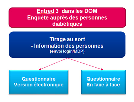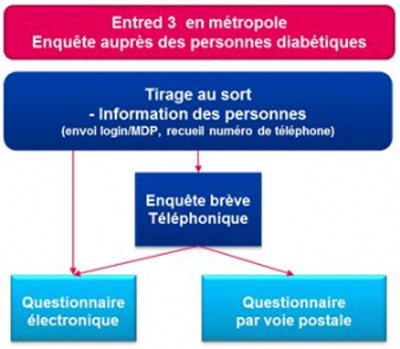 En 2019-2020, 13 000 personnes diabétiques ont été contactées pour participer à l’étude Entred 3. L’enquête auprès des personnes diabétiques et auprès du médecin qui les suit pour leur diabète s’est déroulé en plusieurs étapes :