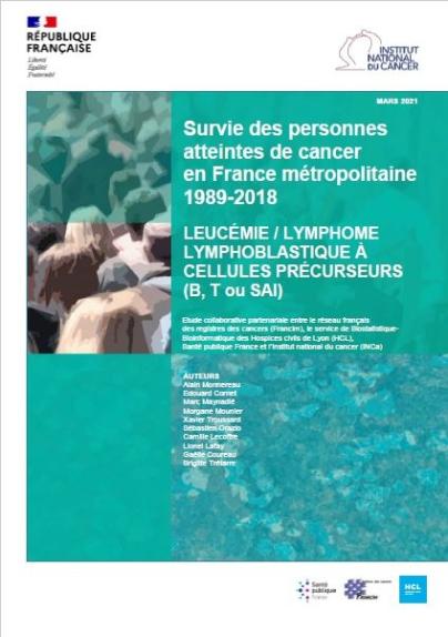 En France, pour l'année 2018, le nombre estimé de nouveaux cas de leucémies et lymphomes lymphoblastiques (L/LL) à cellules précurseurs (B, T ou Sans autre indication (SAI)) était de 900 dont 517 cas chez l'homme et 383 chez la femme. À retenir : Survie nette standardisée à 5 ans de 54 % pour les personnes diagnostiquées entre 2010 et 2015 (comparable chez l'homme et la femme); Très fort gradient de survie nette à 5 ans entre les personnes diagnostiquées à 20 ans (74 %) et celles diagnostiquées à 80 ans (13 %); Forte diminution du taux de mortalité en excès durant les trois premières années de suivi parmi les personnes diagnostiquées entre 2010 et 2015 (mais qui reste supérieur à zéro 5 ans après le diagnostic).