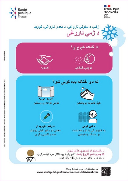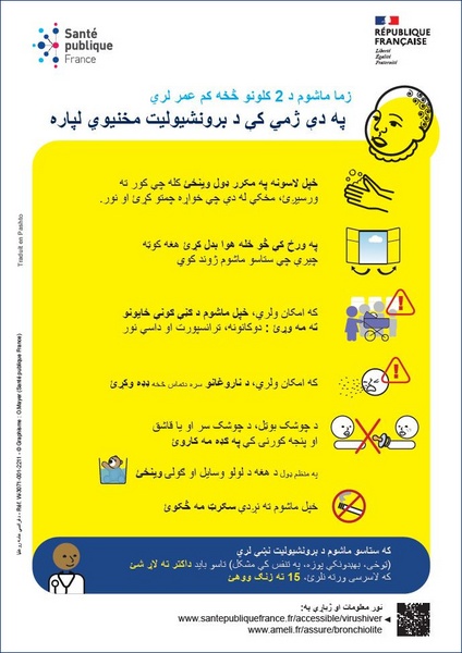How can bronchiolitis be prevented in children under 2 years of age? An illustrated poster developed in collaboration with professionals who work with vulnerable populations. Text in Pashto.