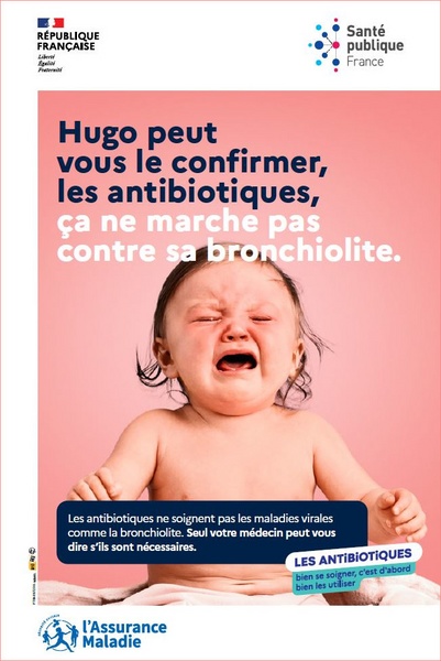 This poster, intended for the general public, reminds people that antibiotics are not effective against viral illnesses such as bronchiolitis.