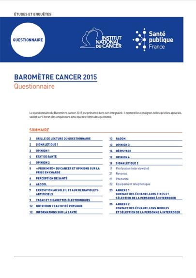 The full 2015 Cancer Barometer questionnaire. It includes the instructions as they appeared on the interviewers' screens, as well as the question filters.