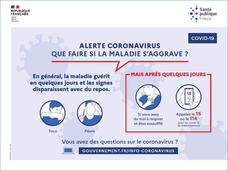 Coronavirus Alert: What to Do If Your Symptoms Worsen [40x30 Poster, French]