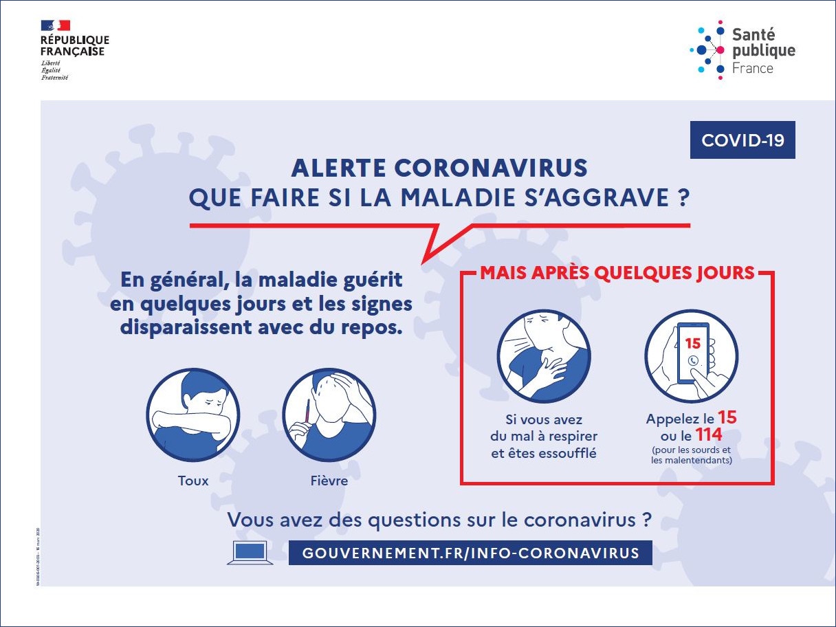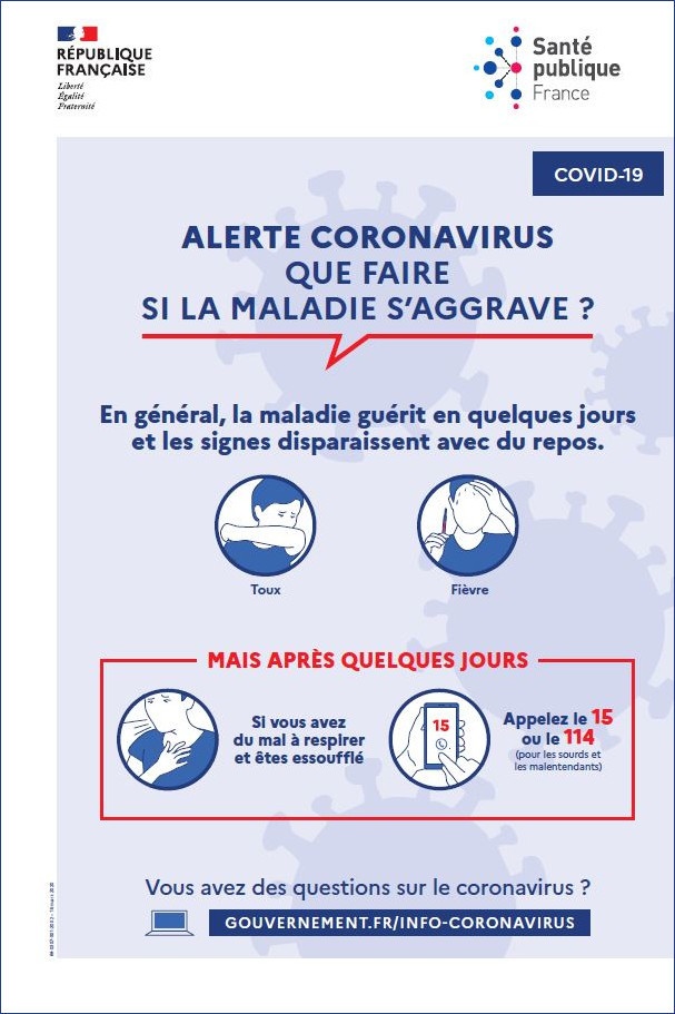 This poster, available in an adaptive Epub3 format and accessible to people with visual impairments, explains what to do if you experience severe symptoms of the illness.