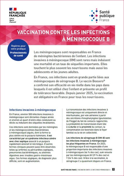 Vaccination Against Meningococcal B Infections - Guidelines for Your Practice