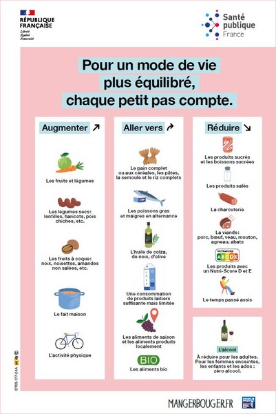 This poster outlines the new recommendations for the public regarding diet, physical activity, and sedentary behavior. It encourages consumers to change their habits and choices gradually and at...
