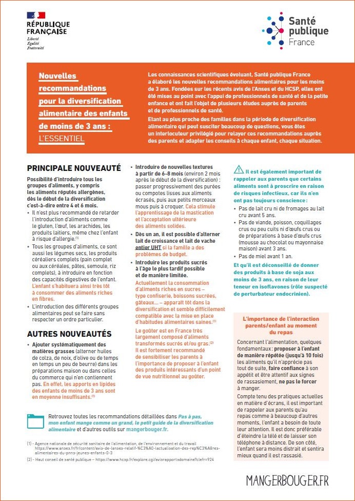 Santé publique France has developed dietary recommendations for children under 3 years of age. Based on the advice of ANSES and the HCSP, these recommendations were developed with the support of...