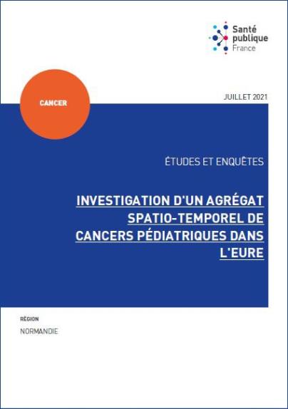 In October 2019, the Normandy Regional Health Agency asked Santé publique France to investigate a suspected cluster of pediatric cancers in the Eure department, as reported by parents of affected children. To assess the spatial and temporal clustering, the method used involved a retrospective analysis to determine whether an excess of pediatric cancers was observed in a defined geographic area, compared to cancer rates observed in mainland France. Cancers identified between 2017 and 2019 were included. Two analyses were conducted: one for all cancers and the other for leukemias, the most common cancer in children. Two geographic areas were defined: one at the municipal level, maximizing the risk of observing an excess incidence, and the other at the cantonal level, minimizing the risk of observing an excess incidence. The investigation identified 11 children diagnosed with cancer during the study period. No excess of cases was found when all cancers were considered. When the analysis was restricted to cases of leukemia, an excess of cases was found in the geographic area corresponding to a group of municipalities (SIR = 6.4 [2.3–14.0]). This excess was not observed when the analysis focused on the cantonal grouping (SIR = 2.3 [0.8–5.0]). An epidemiological study was conducted using a questionnaire administered to parents, and an environmental assessment was performed on known environmental risk factors. This study did not aim to identify individual causes for each cancer but rather to identify a common factor among the children, specific to the geographic area, that could explain the cluster of cases and on which action could be taken. The investigations did not identify any common factor among the affected children, and the environmental assessment did not reveal any specific features. In the absence of an etiological hypothesis, conducting a specific environmental monitoring campaign was not warranted. Consequently, in the absence of identified environmental and epidemiological causes, the hypothesis retained based on the current state of knowledge is a one-time cluster of pediatric cancer cases. Santé publique France recommends continuing to monitor the occurrence of new cases of pediatric leukemia in the geographic area.