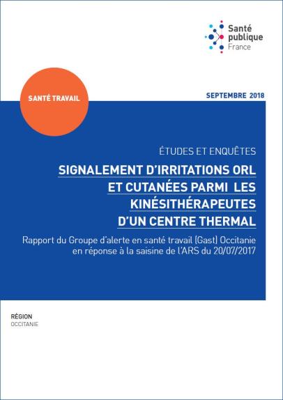 Reports of ENT and skin irritations among physical therapists at a spa center: Report by the Occitanie Occupational Health Alert Group (GAST) in response to the referral from the Regional Health Agency (ARS) on July 20, 2017