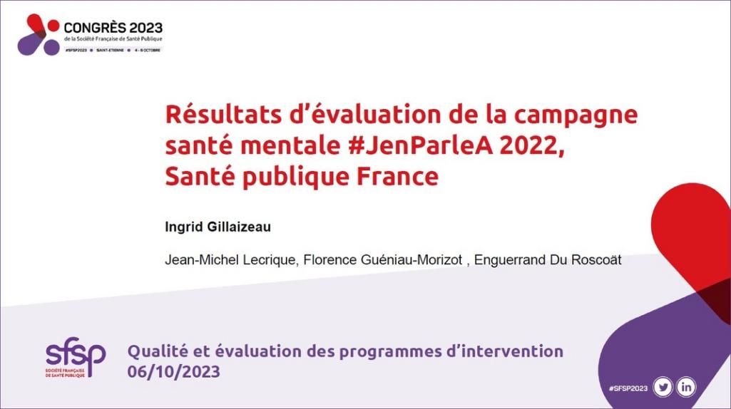 Evaluation Results of the 2022 #JenParleA Mental Health Campaign, Santé publique France