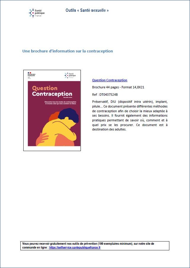 This 2024 catalog presents sexual health resources produced by Santé publique France for the general public.