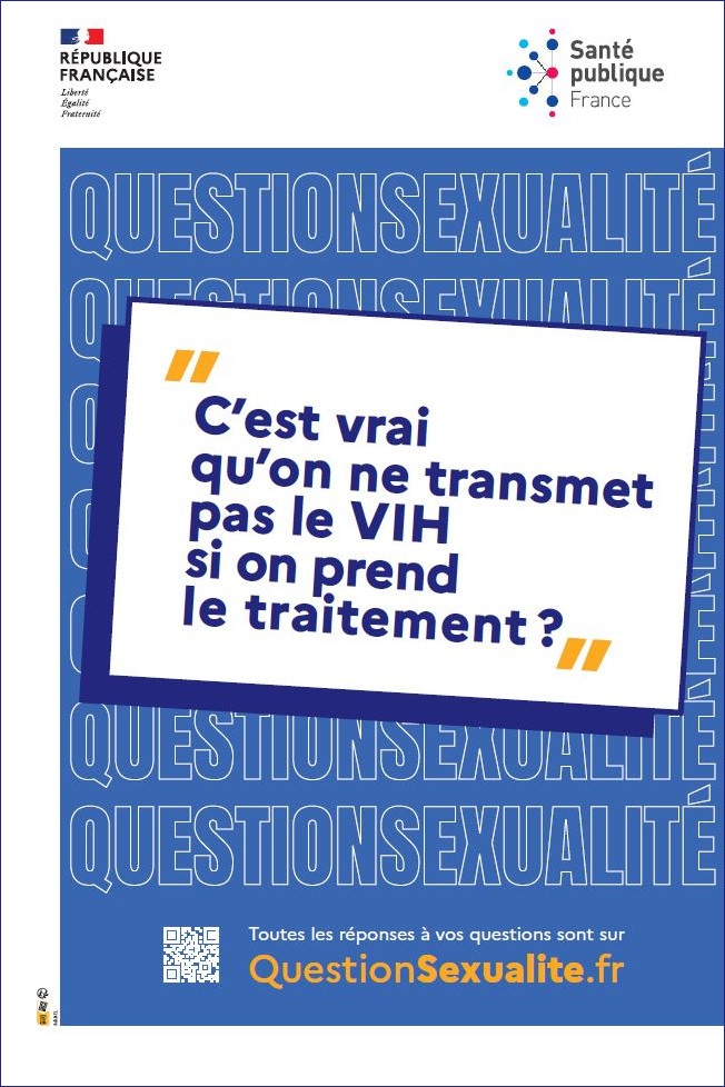 Published in conjunction with Sexual Health Week 2023, this poster encourages people to visit the QuestionSexualite.fr website to learn about Treatment as Prevention (TasP)—antiretroviral...