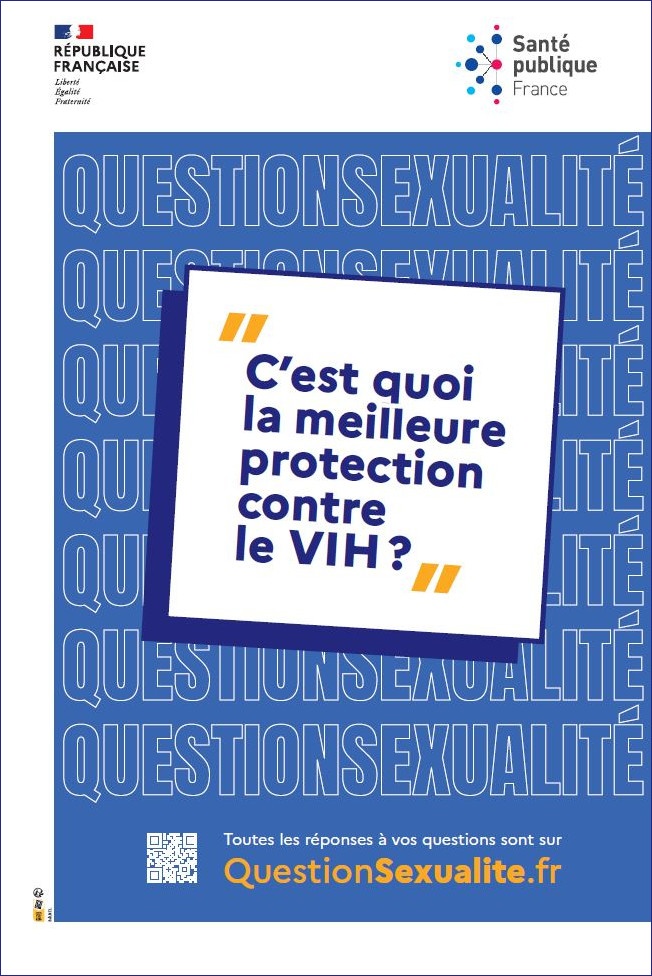 Published in conjunction with Sexual Health Week 2023, this poster encourages people to visit the QuestionSexualite.fr website to learn about ways to protect themselves against HIV. Tagline: "What...