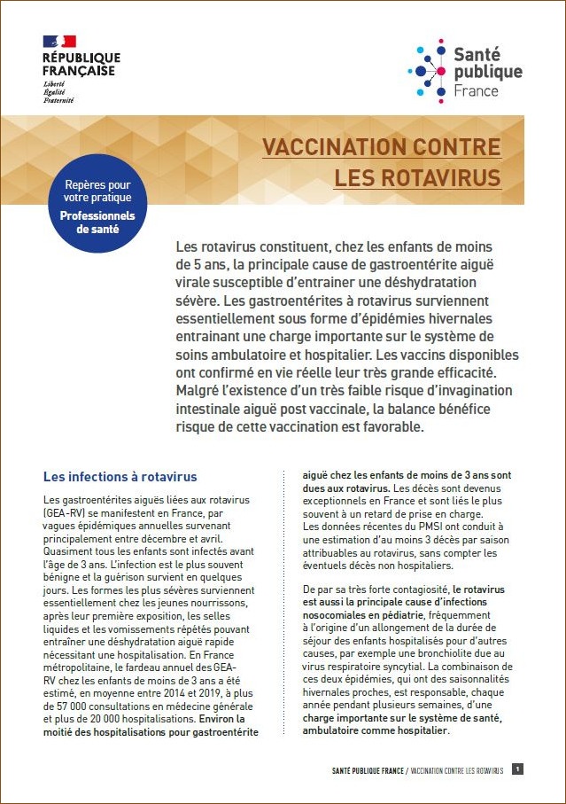 Vaccination contre les rotavirus - Repères pour votre pratique