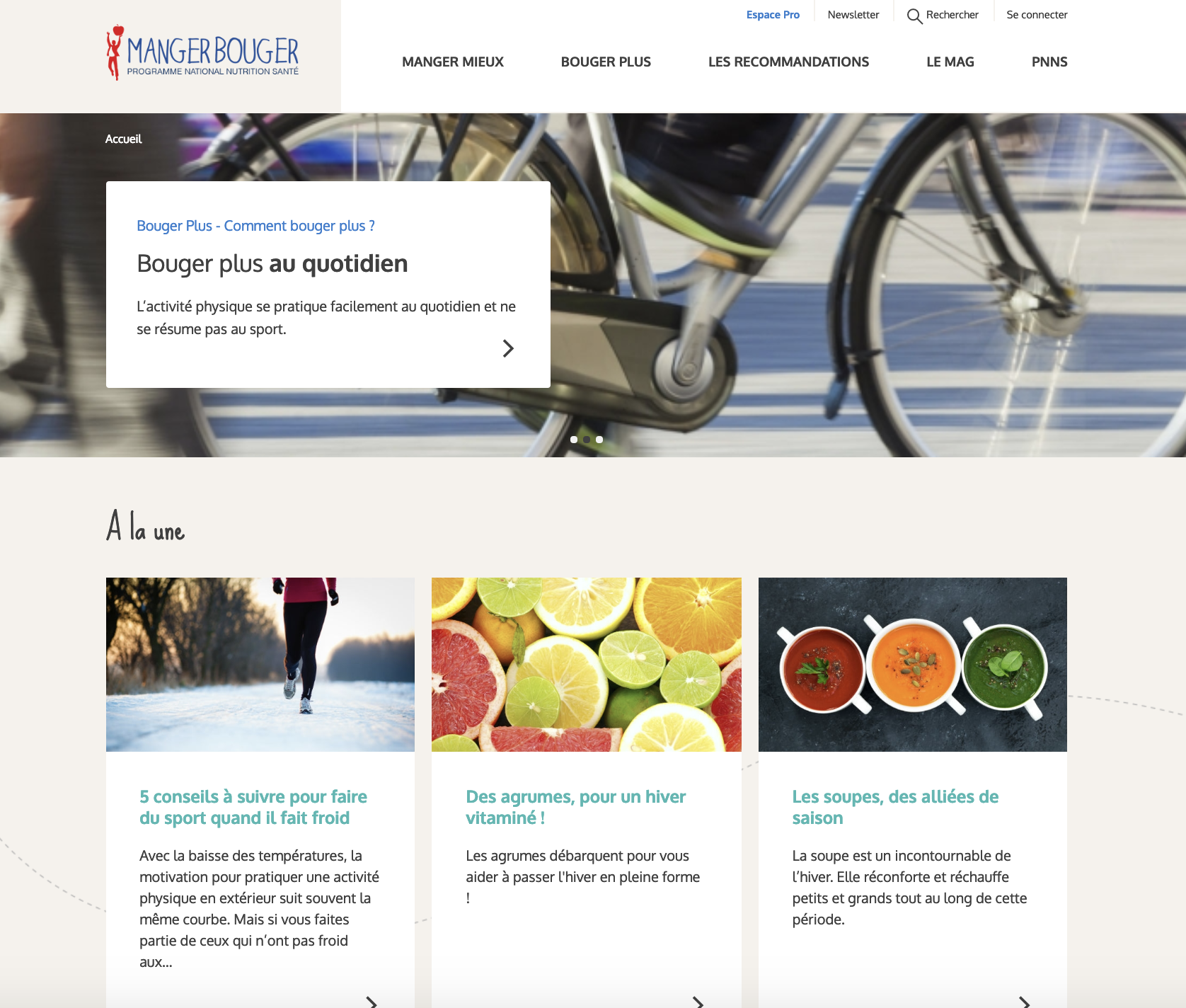 Retrouvez sur le site mangerbouger.fr toutes les informations sur la nutrition, outils et conseils pour manger mieux et bouger plus ainsi que de nombreuses recettes.