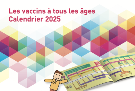 Ce dépliant de 4 pages, présente de façon pédagogique et visuelle le calendrier 2025 des vaccins à faire tout au long de la vie (recommandations inchangées en 2026). Ce document existe aussi en anglais et arabe.
