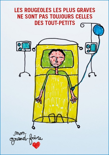 Cette affiche accessible à tous, présente l'importance du vaccin contre la rougeole. Elle est imprimable au format A3 ou A4.