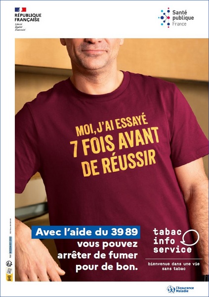 Cette affiche vise à normaliser les tentatives d’arrêt du tabac comme une étape du sevrage. En effet, chaque tentative est un pas vers l’arrêt définitif. Elle promeut également le 39 89, le numéro...