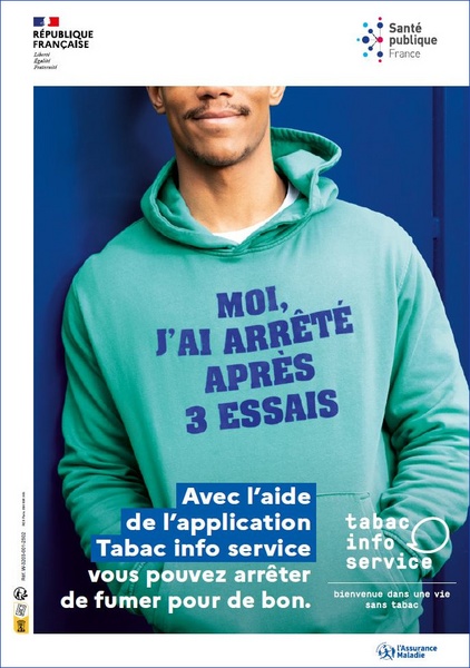 Cette affiche vise à normaliser les tentatives d’arrêt du tabac comme une étape du sevrage. En effet, chaque tentative est un pas vers l’arrêt définitif. Elle promeut également l’application Tabac...